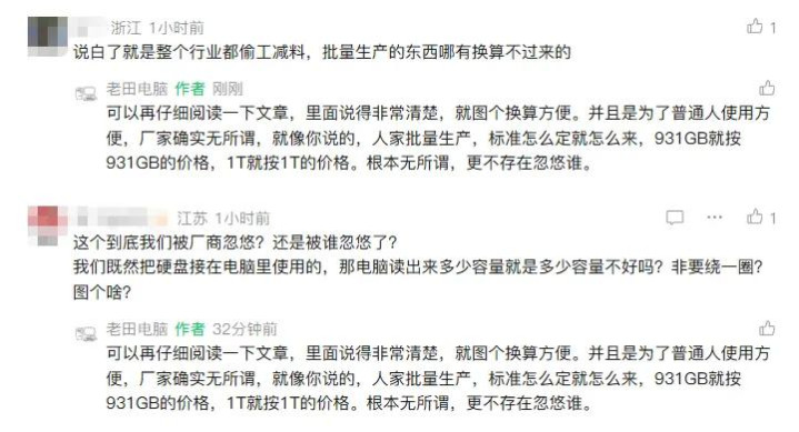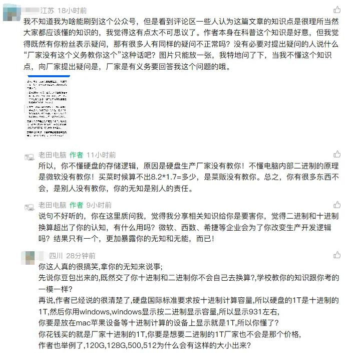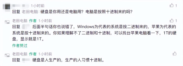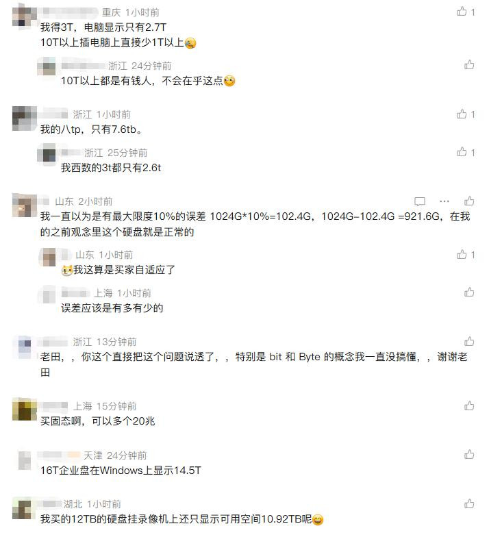文章发出之后,大部分人觉得对于这个问题有了更深层次的理解,表示老田把这个问题解释得更透彻了。并且,开始对照自己使用的硬盘,也发现了这个换算逻辑产生的差距。