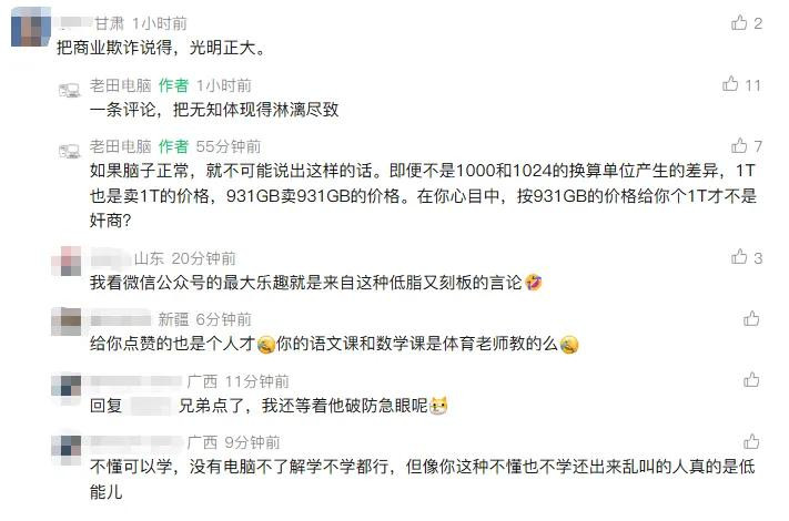 当然,我认为他这话是说得有问题的。老田的很多粉丝,质量是相当高的,在电脑行业的知识储备,相当牛逼。这种质量差的,只是极个别。